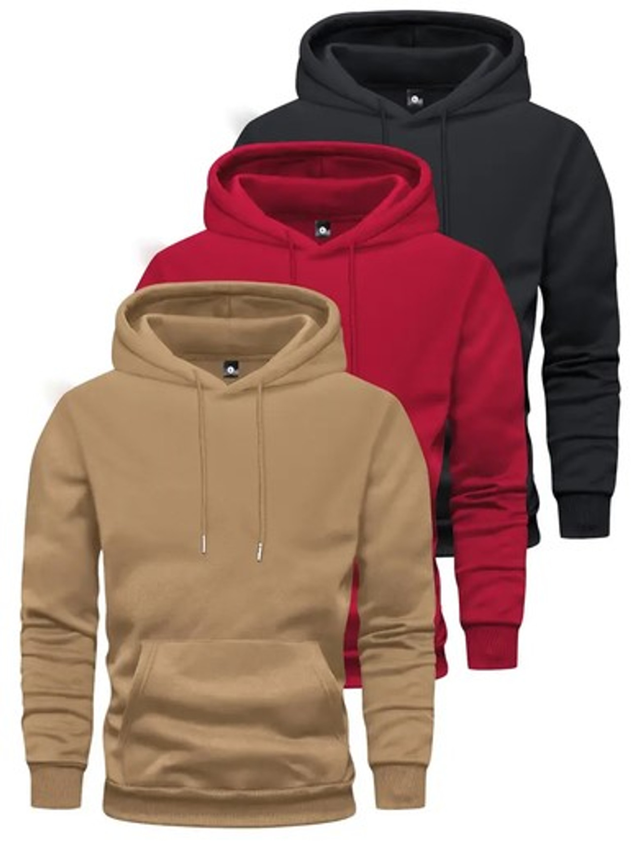 3-Pack Men's Casual Polyester Hooded Sweatshirts with Pockets